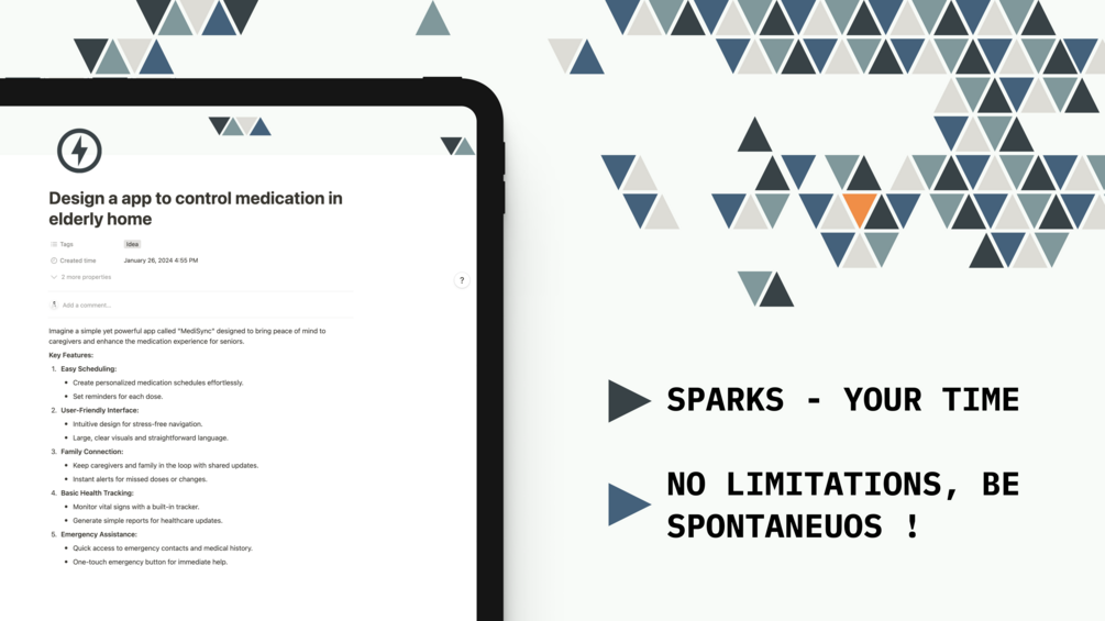 - Ignite creativity and spontaneity with the Spark feature. Capture thoughts, reflections, sketches, or anything that inspires you, fostering a balance between structure and creative expression.